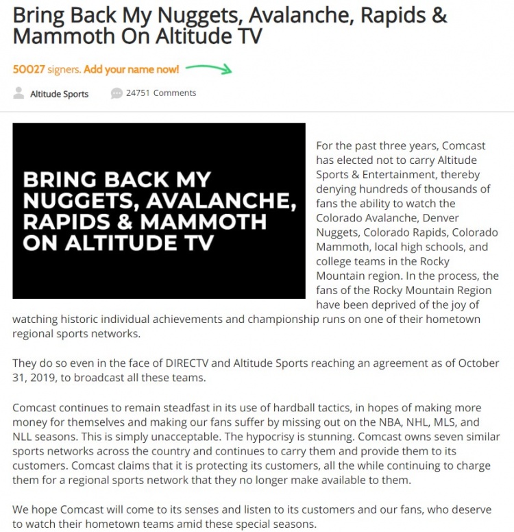 说到他的电视台,科罗拉多之外的球迷可能不知道,最近三年,大部分当地人在电视上是看不到掘金、雪崩等球队的常规赛的,因为克伦克的“高原TV”垄断转播权,跟康卡斯特等有线电视网络一直没能谈妥转播协议。